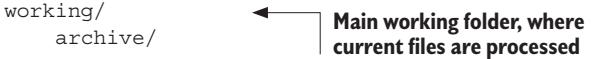 It turns out that archiving the files by subdirectory isn’t much more work than the first solution. The only additional step is to create the subdirectory before renaming the file. The following listing shows one way to perform this step.