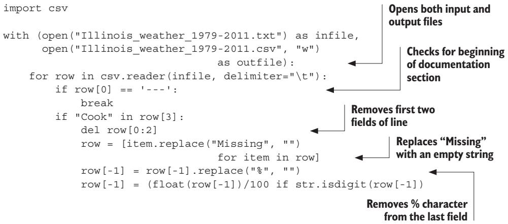 One key addition in the new script is an import of the zipfile library and, with it, the code to create a new zipfile object in the archive directory. After that, you can use the zipfile object to write the data files to the new zip file. Finally, because you’re no longer actually moving files, you need to remove the original files from the working directory. One solution looks like the following listing.
