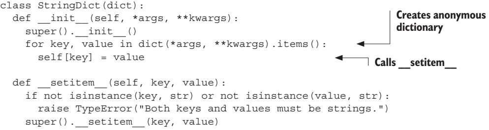 All the standard Python function features—default argument values, extra arguments, keyword arguments, and so forth—can be used with methods. You could have defined the first line of __init__ to be